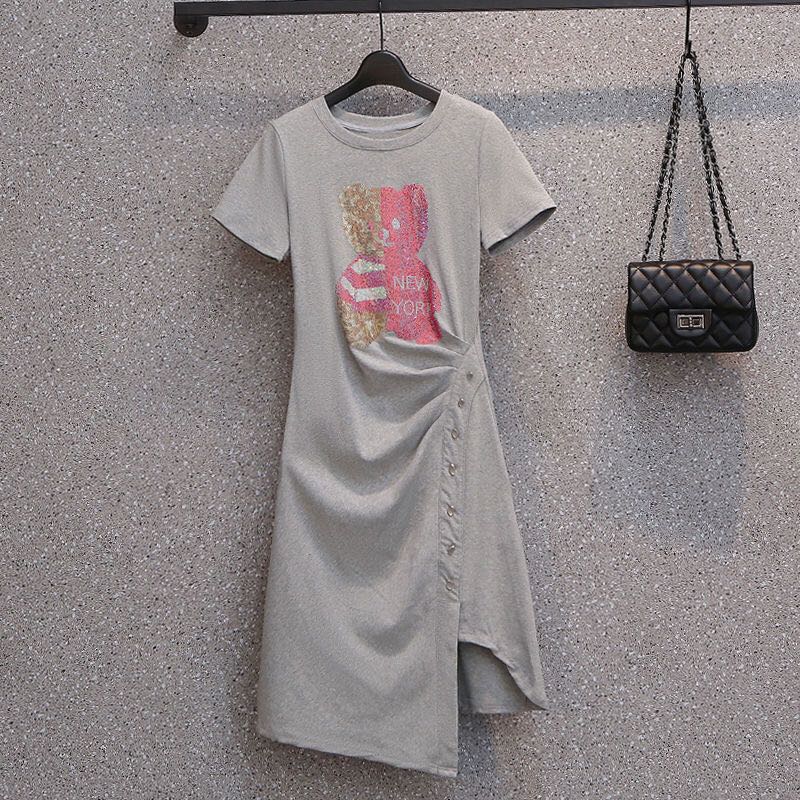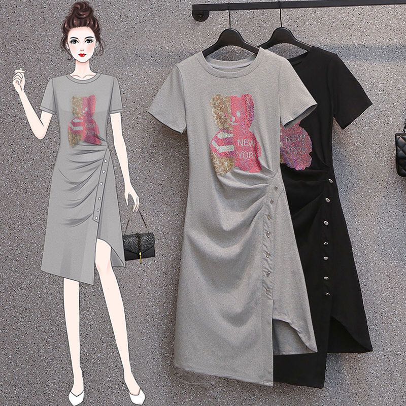 レディース Tシャツワンピース 夏 半 ワンピース 超目玉商品 グレー ブラック M L XL 2XL 3XL 4XL