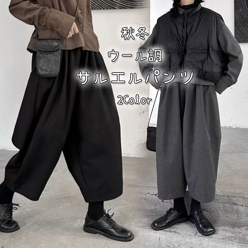 バルーンパンツ ワイドパンツ レディース 秋冬 エルサルパンツ ボトムス ハロン ゆったり 体型カバー パンツ ウール調 冬 ロングパンツ 九分丈 ワイド 長ズボン ロング丈 テーパードパンツ