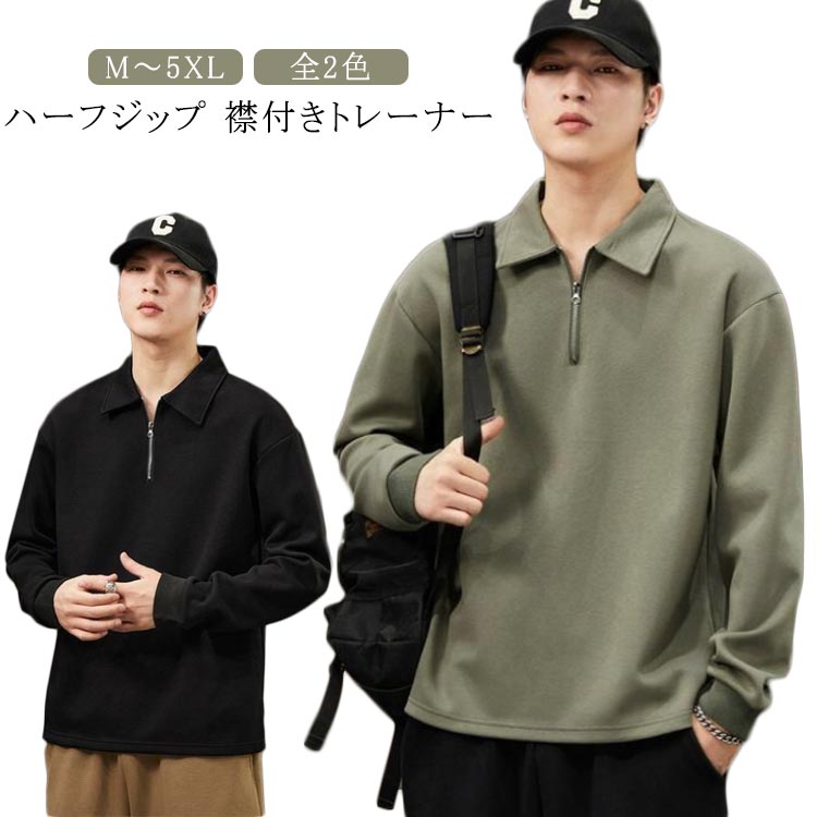 ハーフジップ メンズ ゴルフウェア トレーナー 長袖 トップス ポロシャツ ルームウェア シンプル スポーツ 無地 カジュアル スウェット 秋 通学 通勤 春