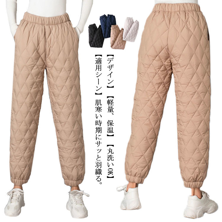中綿パンツ レディース 防寒 ハイウエスト ジョガーパンツ アウトドア ワイドパンツ キルティング ストレッチ 保温 あったか 大きいサイズ ウエストゴム きれいめ ロング丈 ボトムス 無地 トレ 冬