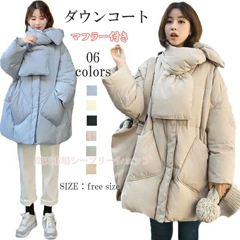 ダウンコート レディース マフラー付き ダウン ノーカラー 軽量 防寒 おしゃれ きれいめ ゆったり ミドル丈 ロングコート 通勤 人気 あったか アウター オフィス