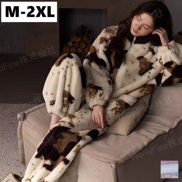 ルームウェア レディースセットアップ 2点セット 部屋着 寝間着 上下セット 前開け ナイトウェア 冬パジャマ レディース モコモコパジャマ ベルベット あったかい フェミニン モコモコ もこ 暖かい
