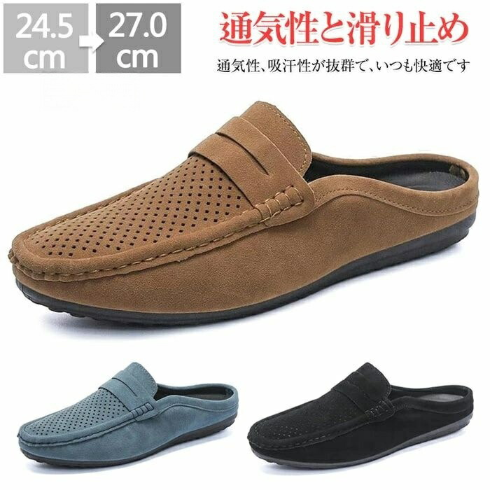 ローファー スリッポン メンズ かかとなし メッシュ シューズ かかとなしシューズ サボサンダル サンダル ビジネスシューズ ビジネスサンダル カジュアルシューズ モカシンシューズ