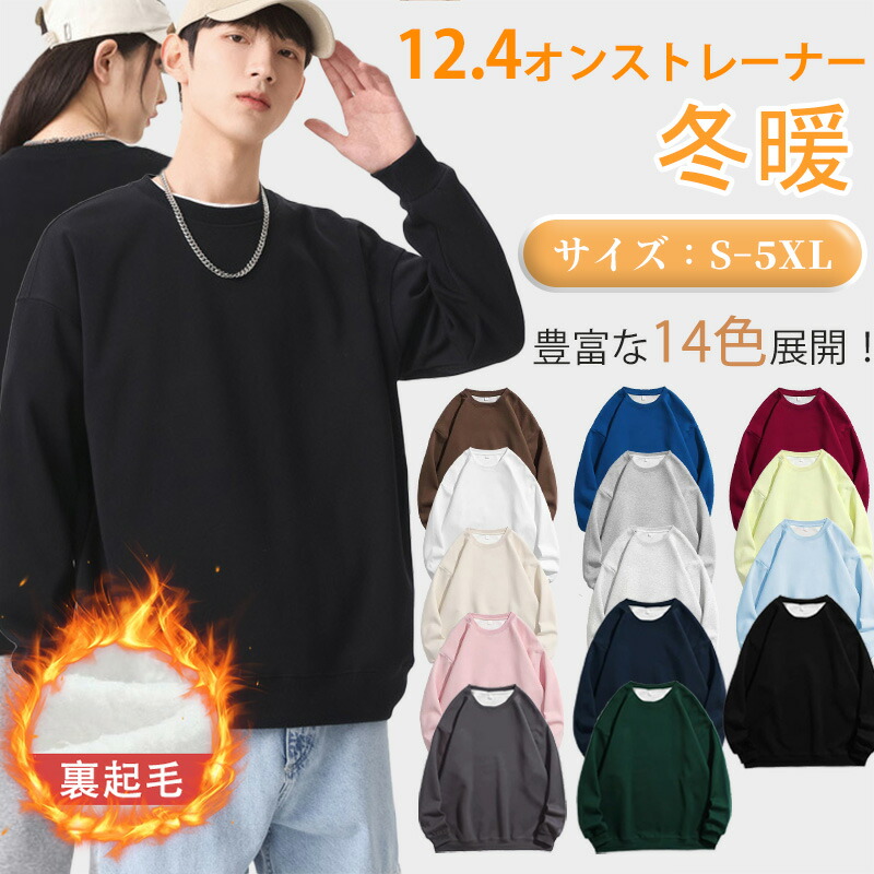 トレーナー メンズ レディース スウェット パーカー 裏起毛 大きいサイズ 無地 厚手 男女兼用 ゆったり 12.4オンス 春服 春物 重ね着風 シンプル トップス プルオーバー イ カジュアル