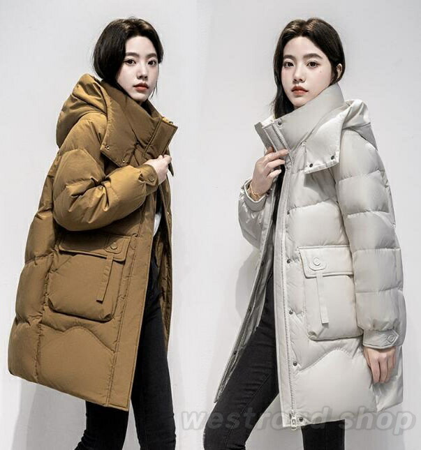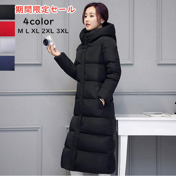ダウンコート レディース ダウンジャケット ロングコート 中綿 ミディアム丈 スタンドカラー フード付き 厚手 冬服 軽量 防風 暖かい 防寒コート あったか シンプル カジ 大きいサイズ