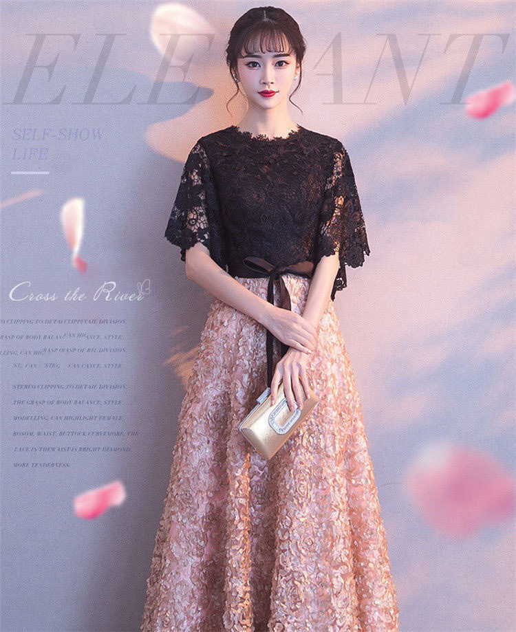 ドレス 大人 ピアノ発表会 中学生 高校生 ロングドレス 演奏会ドレス 黒 イブニングドレス パーティードレス 韓国 カクテルドレス お呼ばれ ブライズメイド 袖あり お呼ばれドレス