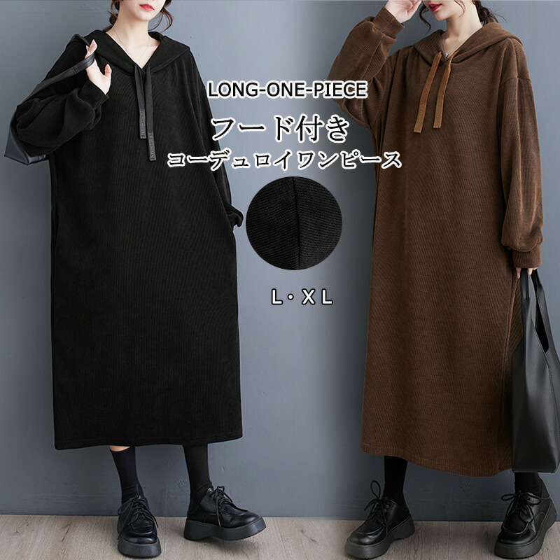 パーカーワンピース マキシワンピース ワンピース 秋 無地 ロング丈 長袖 コーデュロイ 長袖ワンピース マキシ 大きいサイズ 体型カバー パーカー ゆったり ロングワンピース ワンピ