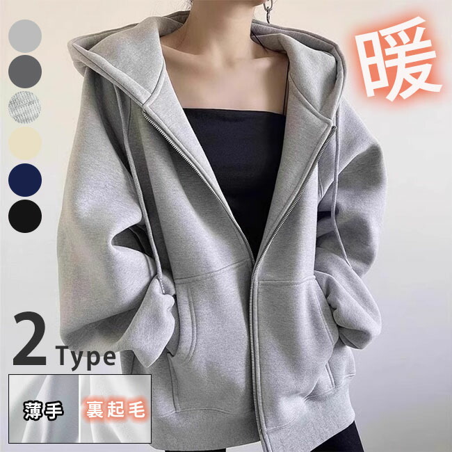 ジップパーカー 裏起毛 長袖 厚手 パーカー レディース オーバーサイズ 秋 冬 ジップアップパーカー