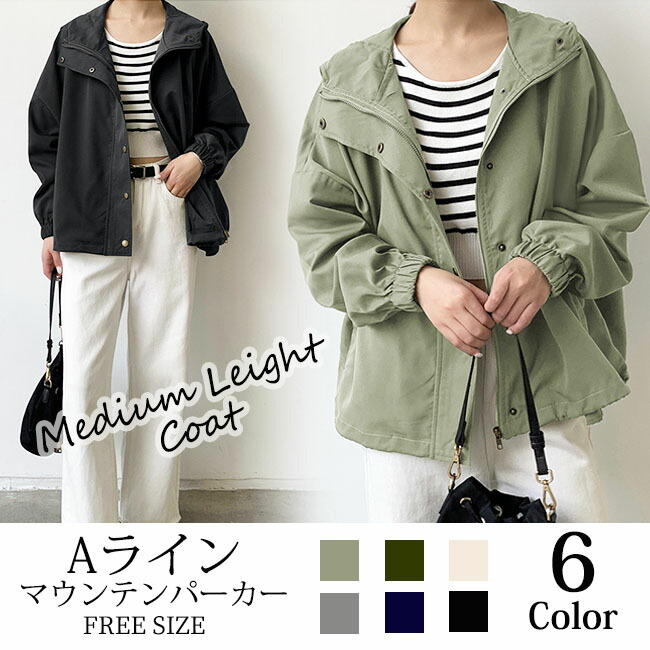 コート アウター レディース マウンテンパーカー ナイロンジャケット モッズコート モッズパーカー Aライン ショート カーキ オリーブ 黒 ベージュ グレー フード カジュアル 薄手 春用 パーカー