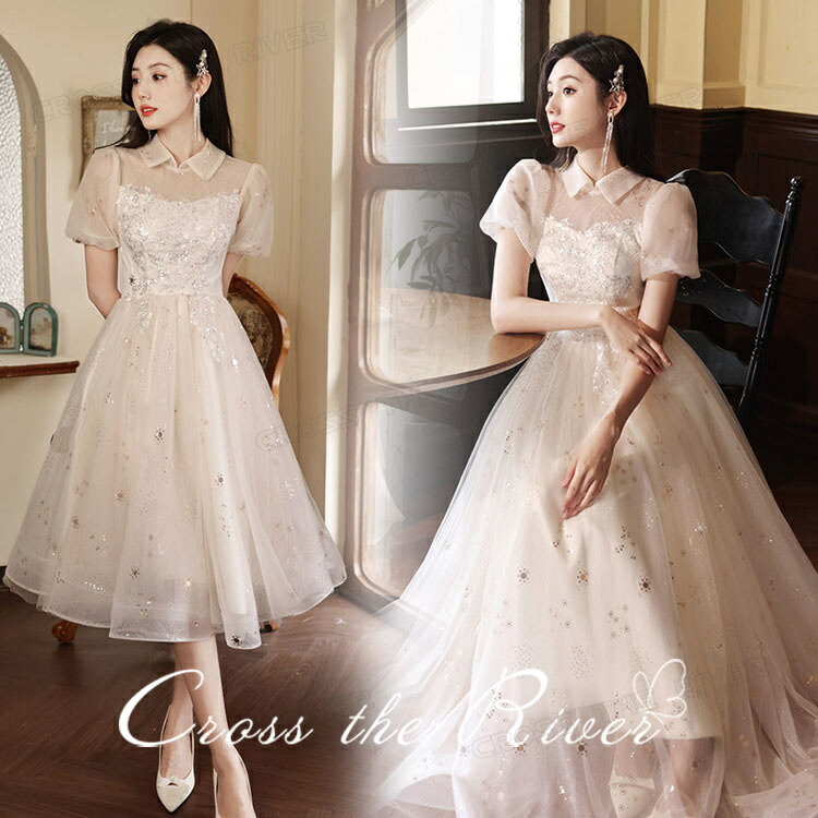ピアノ発表会 ドレス 高校生 大人 韓国 パーティードレス 演奏会用ドレス 体型カバー カラードレス シャンパン キラキラ ウェディングドレス ラウンドネック 披露宴 発表会 結婚式 フォーマル