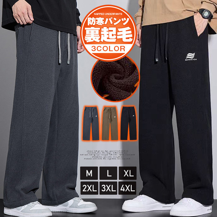 メンズ 裏起毛パンツ ワッフル 冬 あったか ワイドパンツ 裏起毛 防寒パンツ 暖かい 防風 ロングパンツ ウエストゴム 大きいサイズ ゆったり シンプル おしゃれ ワイドパンツ 裏起毛