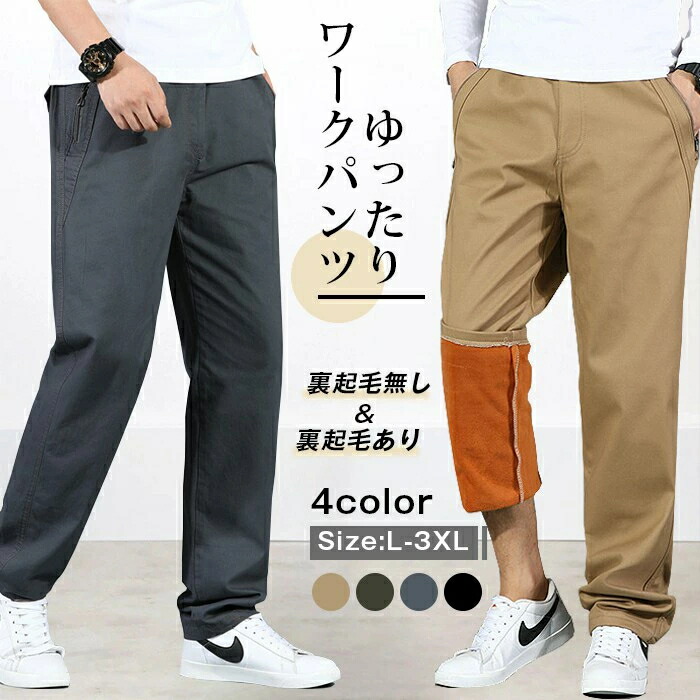ワークパンツ メンズ チノパンツ 防寒ズボン 秋冬 裏起毛 大きいサイズ ウエストゴム 脚長効果 丈夫 頑丈 作業着 作業服 耐摩性 コットン100% ボトムス 釣り ゴルフパンツ