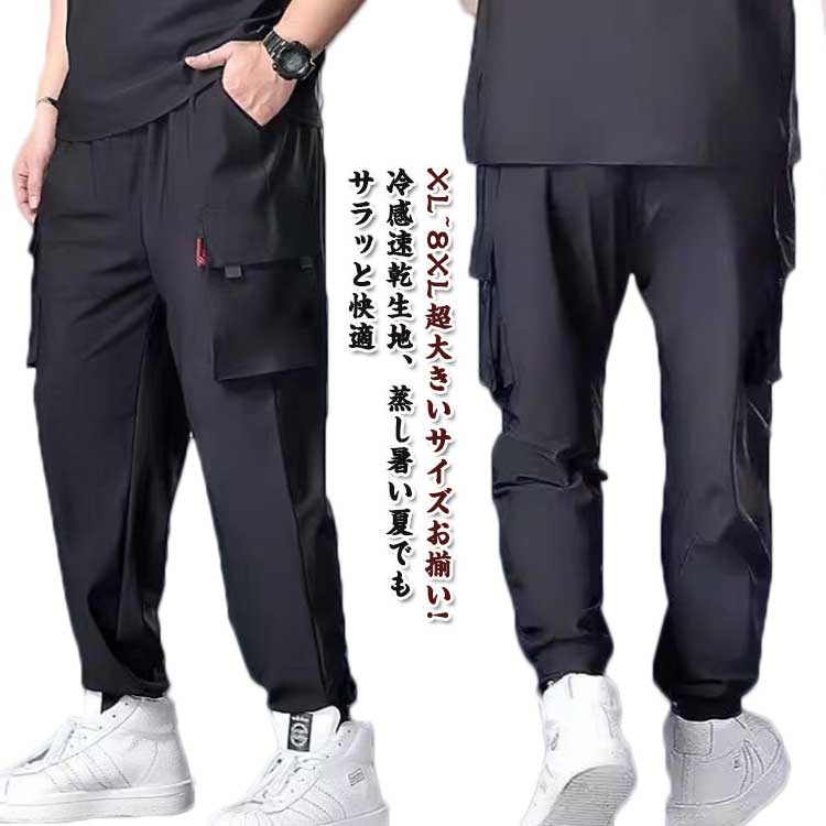 超大きいサイズ XL-8XL 接触冷感 メンズ パンツ カーゴパンツ 夏 薄手 涼しい 冷感パンツ ゆったり ジョガーパンツ 作業着 吸水速乾 通気性 ポケット ウエストゴム スポーツウ ストレッチ