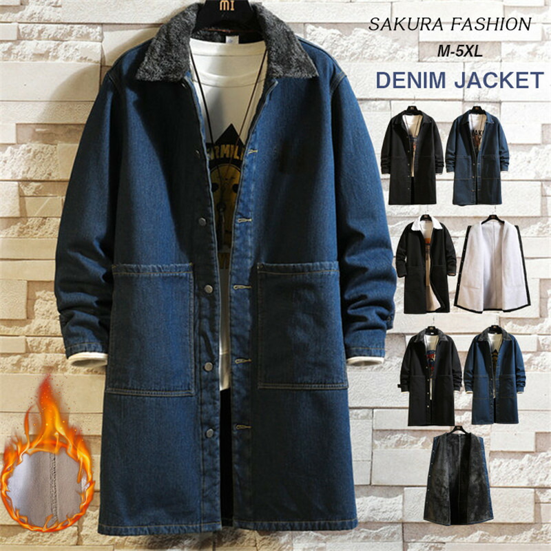 コート メンズ デニムジャケット ロング丈 デニムコート Gジャン ジージャン ロングジャケット ロングコート ヴィンテージ 裏起毛 春秋冬 アウター おしゃれ ブラック 無地 ステンカラーコ ブルー