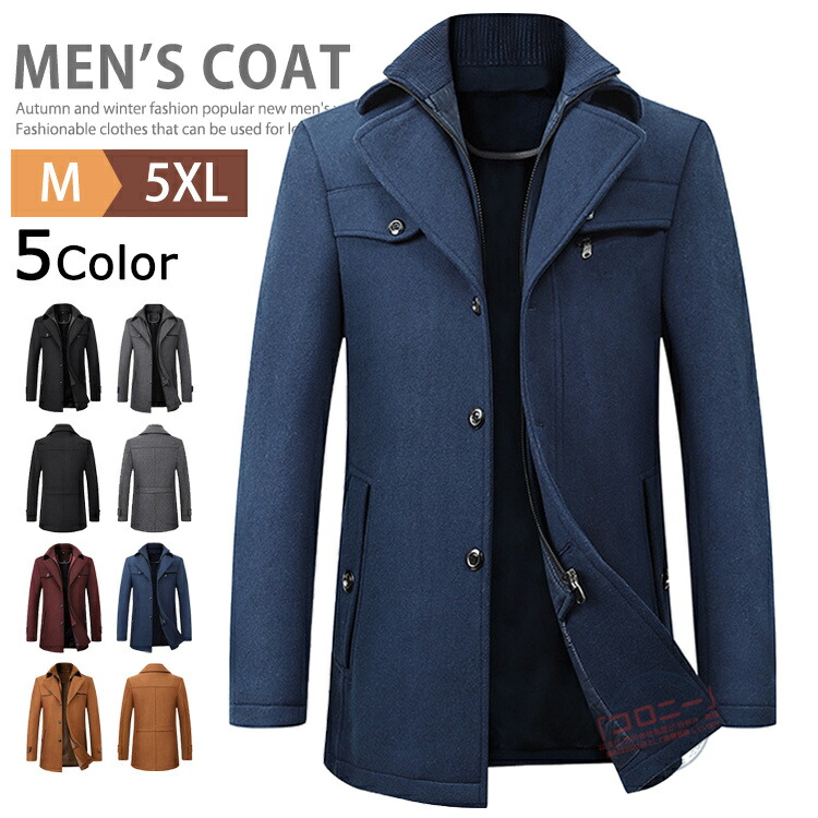 秋冬 6 ウールコート メンズ チェスターコート アウター ロング丈 薄厚2タイプ ステンカラー 中綿 トレンチコート 長袖 大きめ ビジネスジャケット 厚手 ファッション スリム ジュ 日常着用