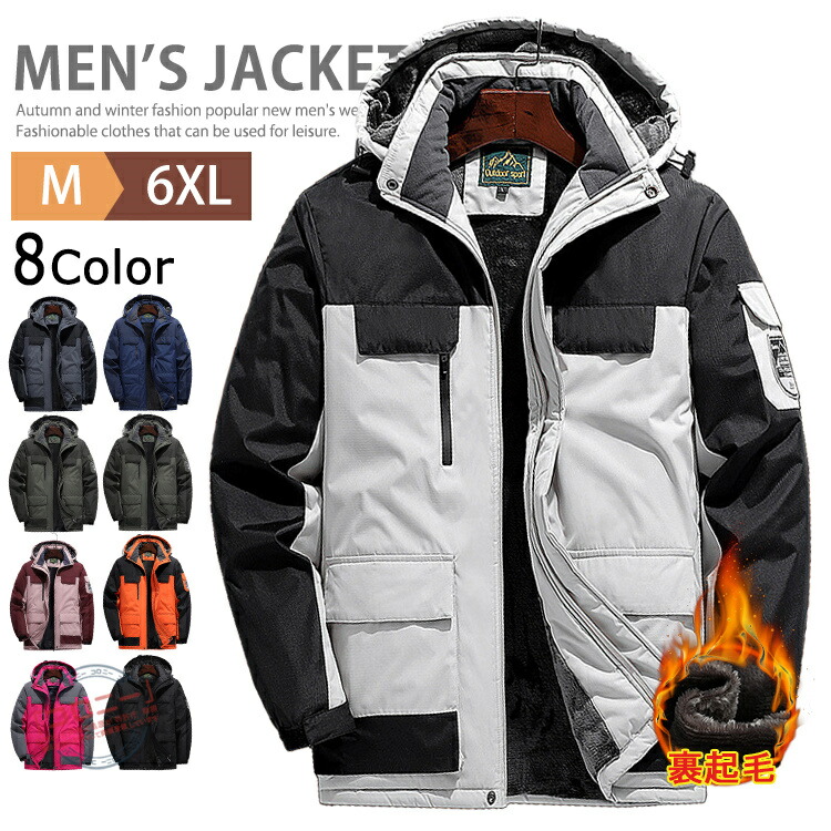 マウンテンパーカー メンズ 防寒 裏起毛 ウインドブレーカー 上 トレッキングジャケット ブルゾン 登山ウェア ボアジャケット アウター アウトドア 撥水 防風 ジップアップ パーカー ハイネッ 厚手
