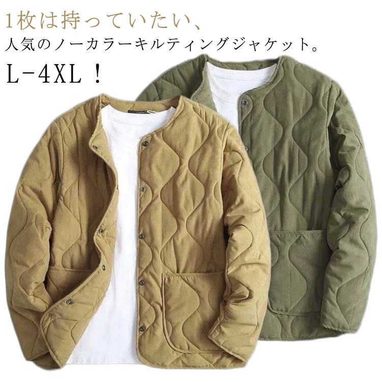 ノーカラー 長袖 ジャケット 羽織り アウター コート キルティングコート カジュアル メンズ 防寒 ライナージャケット ミリタリー ノーカラージャケット 中綿 ブルゾン ライト ゆったり