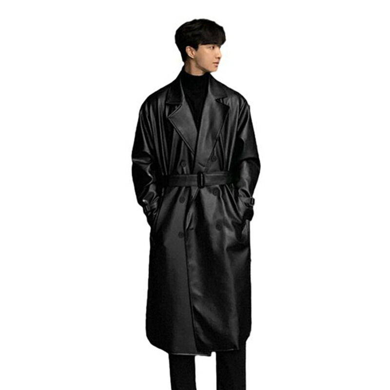 メンズ スプリングコート レザージャケット ロングトレンチコート ベルト チェスターコート ダブルボタン ウールコート 長袖 ゆったり 英倫 かっこいい 軽やか お出掛け 春秋 秋冬 仕事