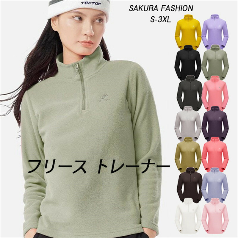 フリーストップス ハーフジップ レディース 長袖tシャツ スポーツシャツ ランニングウェア ゴルフウェア テニスウェア カットソー ストレッチ 伸縮性 裏フリース 吸汗速乾 春秋冬 裏起毛