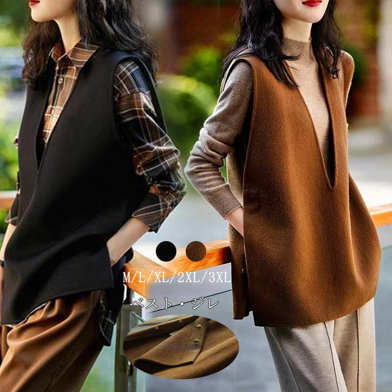 レディース 秋 ジレ ニット ベスト レイヤード 重ね着 前開き カーディガン トップス お洒落 きれいめ ノースリーブ シンプル 着回し 柔らか カジュアル 可愛い お出かけ ナチ 大人