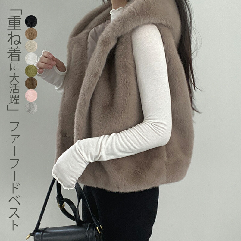 ボアベスト レディース 秋冬 フード ボア ベスト フード付きベスト ファー エコファー 秋 冬 ファーベスト フード付き トップス フードベスト ショート 丈 コート ショートベスト 前開き ジレ
