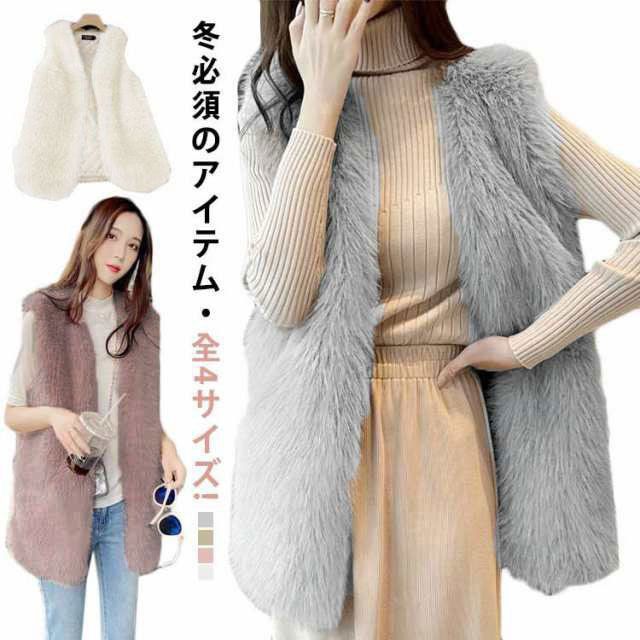 冬必須のアイテム ファーベスト フェイクファー ベスト ジレ レディース アウター ファーコート ロング ロングベスト もこもこ 大きいサイズ 体型カバー ファージャケット ノースリーブ コー 上品