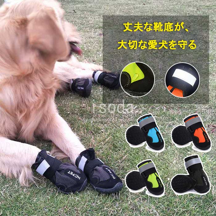 犬 靴 脱げない 4足セット犬 雪 ブーツ 犬用靴 ドッグシューズ ドッグブーツ 防水 防寒 暖かい 雨用ブーツ 雨用靴 光る 反射 安全 安心 中大型犬用靴 雨の日 お散歩ブーツ 滑り止め