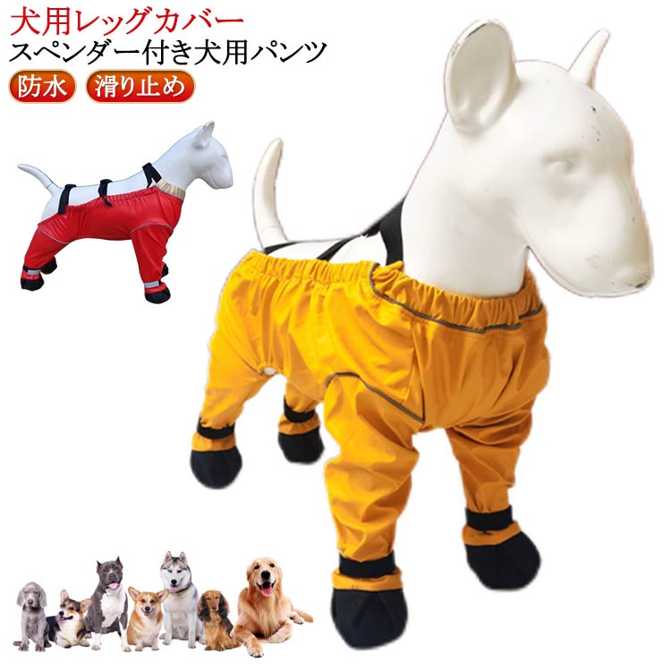 犬服 犬 レインコート レインパンツ 犬靴 サスペンダー付き防水犬用ブーツ 犬用レッグカバー スペンダー付き 犬用パンツ 犬用ブーツレギンス