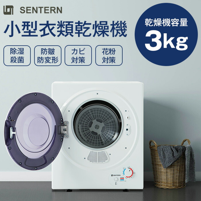 SENTERN 衣類乾燥機 小型 小型衣類乾燥機 3.0 3kg 除湿 衣類 乾燥 布団乾燥 ドラム式 静音 タイマー 家庭用 母の日 1人暮らし ダイヤル式 ふとん乾燥 服 湿気対策 梅雨対策 洋服