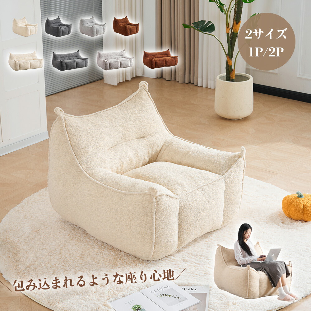 ソファ 1人掛け ローソファ フロアソファ もこもこ 包み込まれる 1P 2P 座椅子 北欧 おしゃれ コンパクト リビング ソファベッド 一人暮らし 美容室 サロン 圧縮梱包