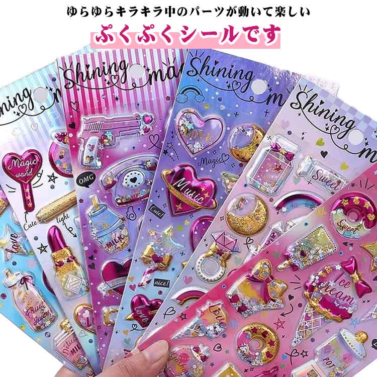 ウォーターシール ぷくぷくシール おはじきシール ご褒美シール ランダム10枚セット シール帳 シール手帳 ぷっくりシール シール 手帳 可愛い 装飾用 DIY用 3D 3D立体