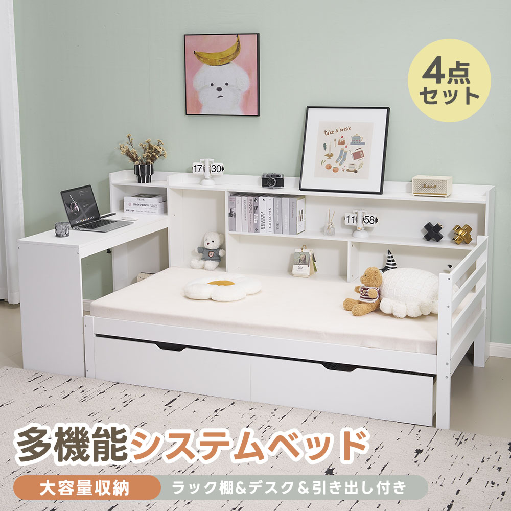 【1年保証/送料無料】【デスク&ラック棚&引き出し】システムベッド 多機能 ロフトベッド シングル ベッド ロータイプ ベッド 収納 大人ロータイプ 学習机 本棚 子供ベッド 子供部屋