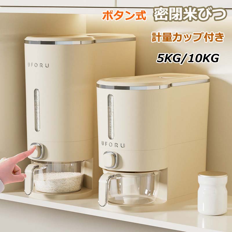 米びつ お米収納 米びつケース 密閉米びつ 米櫃 インテリア 計量カップ付 送料無料 5 10 新生活 ボタン押しタイプ