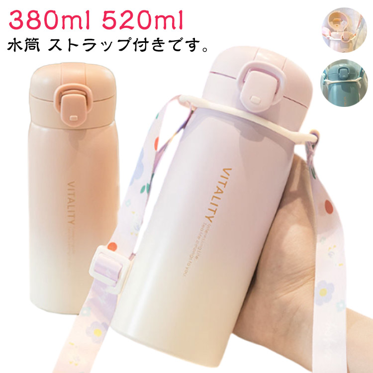 水筒 紐付き 380ml 520ml 大容量 キッズ 子供用 直飲みタイプ ストロータイプ 小学生 男の子 女の子 中学生 ダイレクトボトル 大人 マグボトル 保温 ワンタッチ 紐 スト 保冷