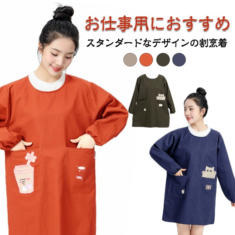 暖かい割烹着 おしゃれ 裏起毛 かっぽう着 レディース 撥水 冬用 秋冬 長袖 ロング丈 スモック エプロン 防寒 袖口リブ チュニック 保育士 家事用 かっぽうぎ 寒さ対策 袖カバー 腕カ 節電対策