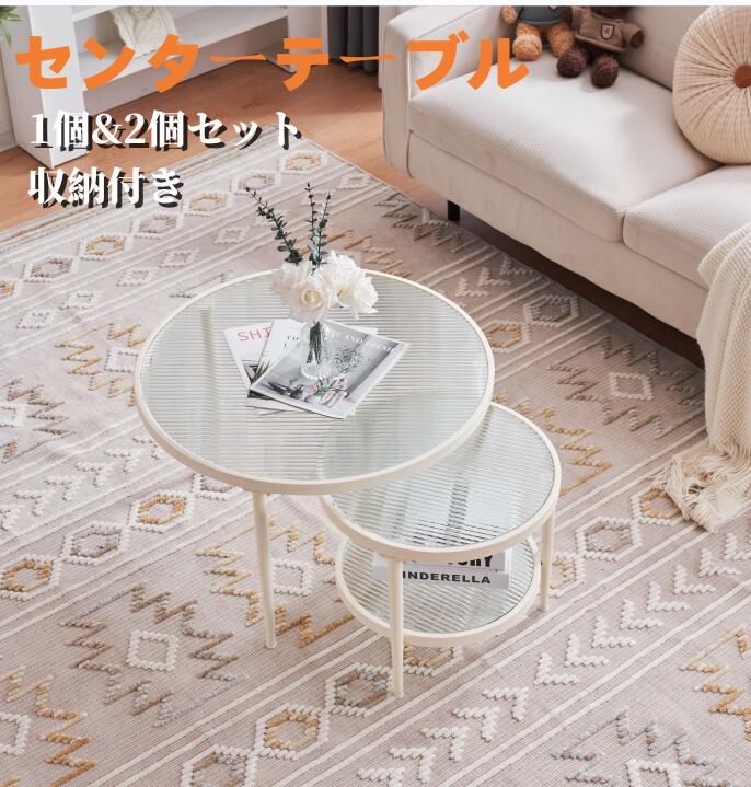 【送料無料/一年保証】【ガラス/2個セット】ネストテーブル 2個セット センターテーブル 丸 収納 モダン 軽量 組立簡単 北欧 高級感 一人暮らし