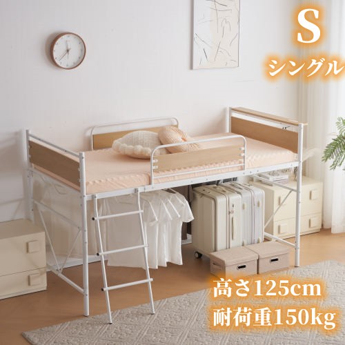 【1年保証/送料無料】【高さ125/耐荷重150/コンセント付き】ロフトベッド シングルベッド パイプベッド 頑丈 耐震 クリスマス 一人暮らし 耐震