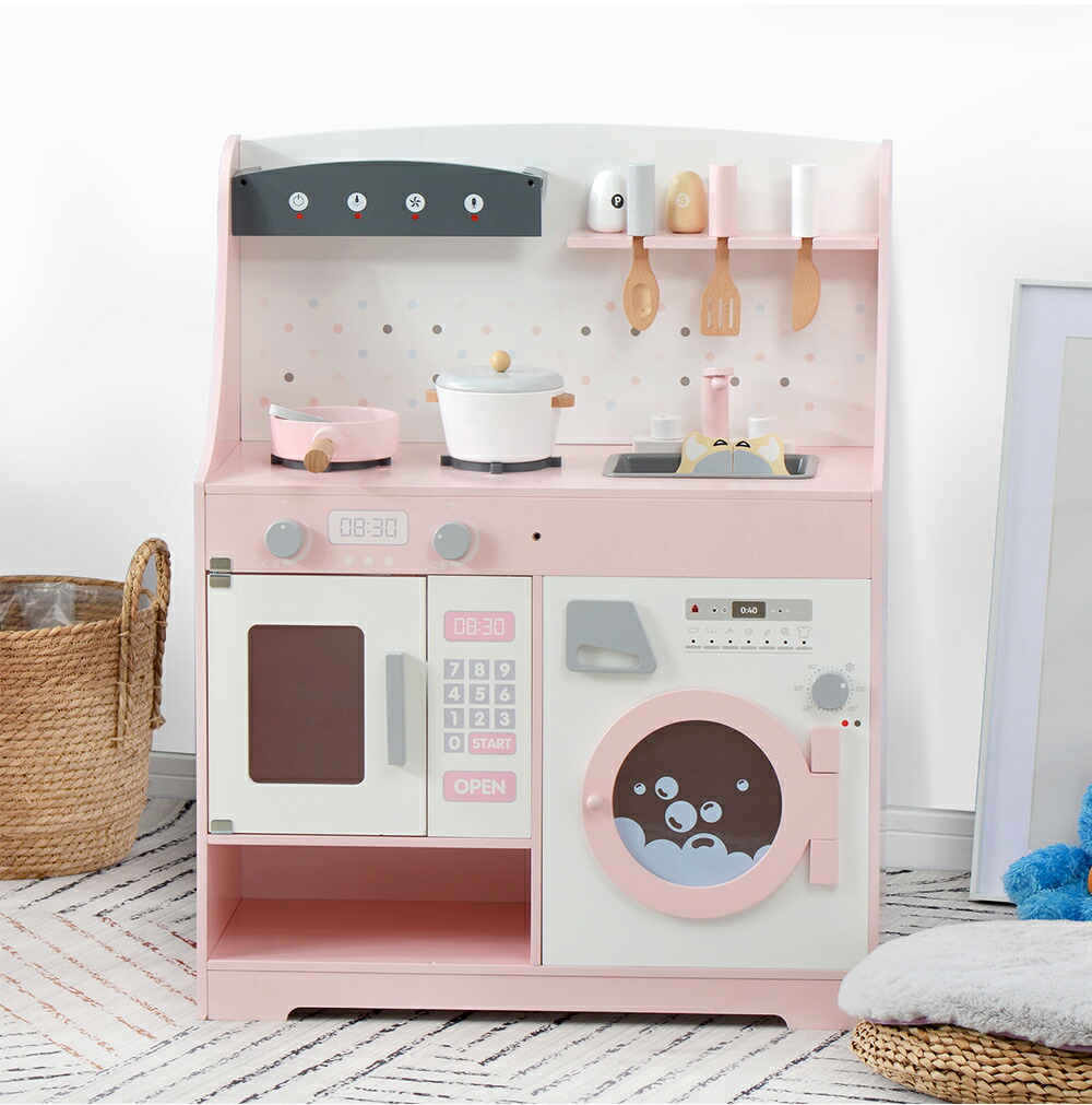 ままごと キッチン 調理器具付き おもちゃキッチン 木製 台所 洗濯機 調味料 食材 知育玩具 コンロミニキッチン キッズ 誕生日 プレゼント 子供一年間品質保証】 ベビー