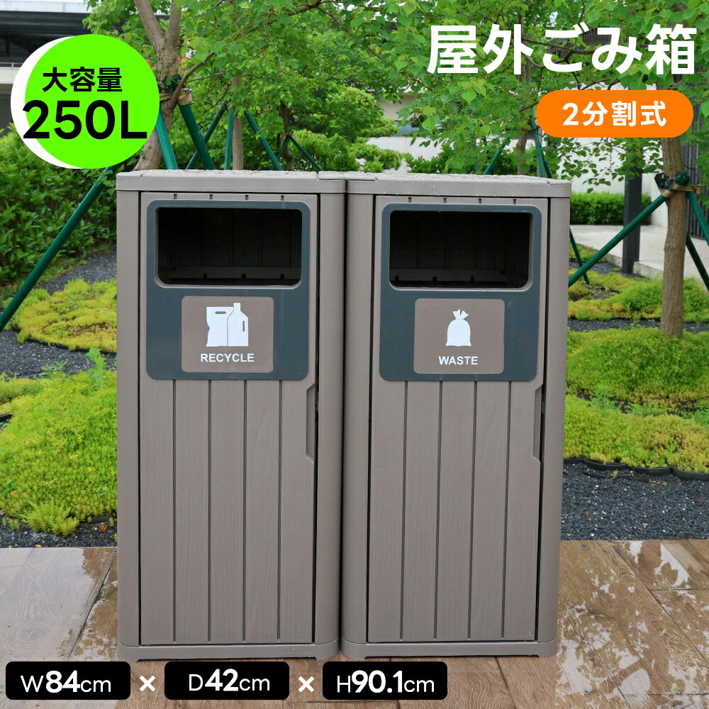屋外用ゴミ箱 ゴミ箱 屋外 大容量 2分割タイプ 屋外ごみ箱 ストッカー 防水 耐侯 ゴミストッカー 防鳥 ゴミボックス ダストストッカー ゴミステーシ 屋外収納庫