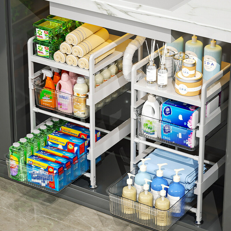 シンク下収納 2段 3段 洗面台下 収納 折りたたみ式 キッチン収納ラック 大容量 引き出し シンク下ラック スライド 収納ラック キッチンラック 整理収納 キッチンストッカー スチール製丈夫 台所