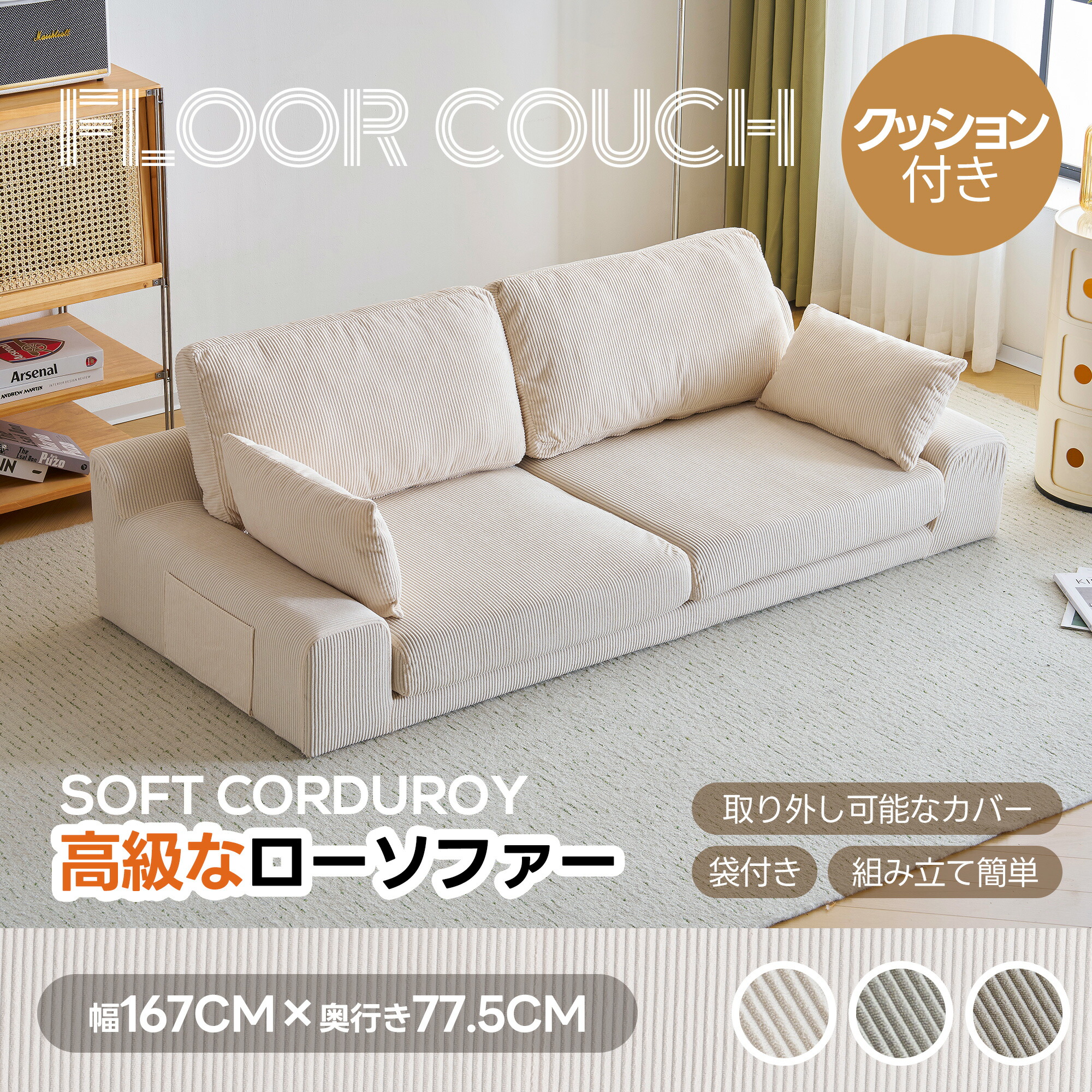 【一年間品質保証】2人掛けソファベッド フロアソファ コンパクト 幅約167 ローソファ こたつ用 ソファー 1人暮らし マルチに使える クッション付き 座椅子 1人掛け