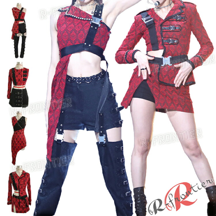 韓国 ジャズ ダンス衣装 赤 黒 セットアップ 大人 へそ出し レディース アイドル 衣装 kpop ワンピース スカート セクシー ダンス hiphop ステージ衣装 カーゴパンツ
