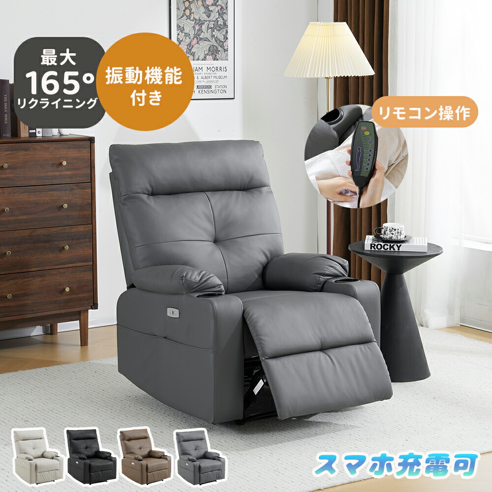 電動リクライニング ソファー 1人掛け 電動ソファー 電動リクライニングソファ 電動 USBポート付き 電動リクライニングチェア PCV 耐圧分散 腰痛 スマホ充電可 モーションソファー