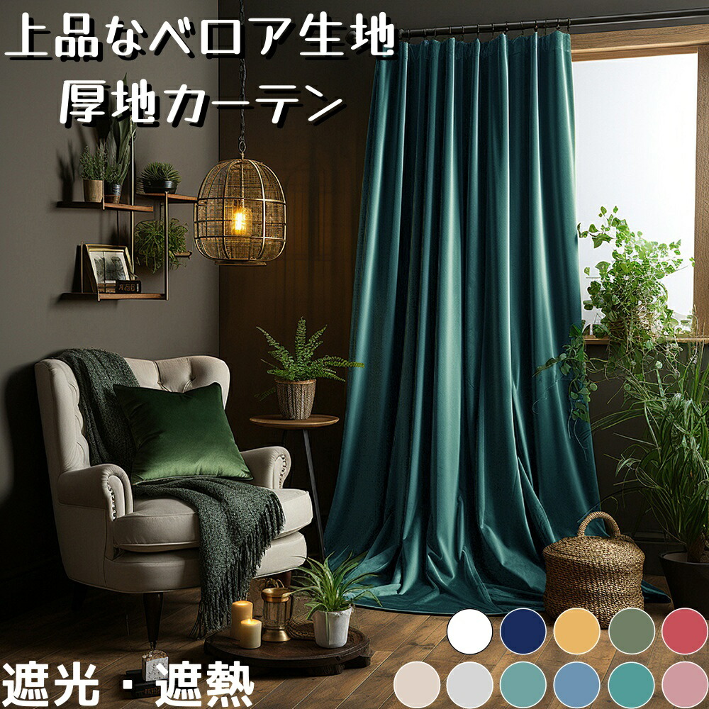 光沢感がある滑らかで手触りが心地よいベロア生地を使用したカーテン 新生活 寝室 リビング 使いやすい オフィス 家庭用 会社用 オシャレ
