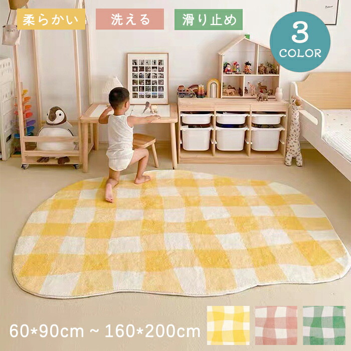 カーペット ズレない 可愛い 赤ちゃん チェック柄 80×160 160×200 イエロー グリーン ピンク リビング ダイニング かわいい 引越し祝い 新生活 キッズルーム インテリア 保育園