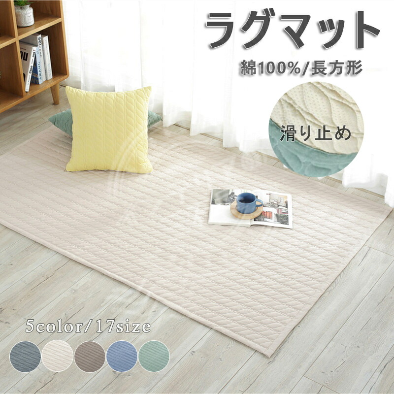 全17サイズ!ラグ 洗える 夏用 キルティング ウォッシャブル 赤ちゃん 綿 100% ラグカーペット 洗える 長方形 滑り止め付き ラグマット 丸洗い オールシーズン 春 夏 秋 冬 使える