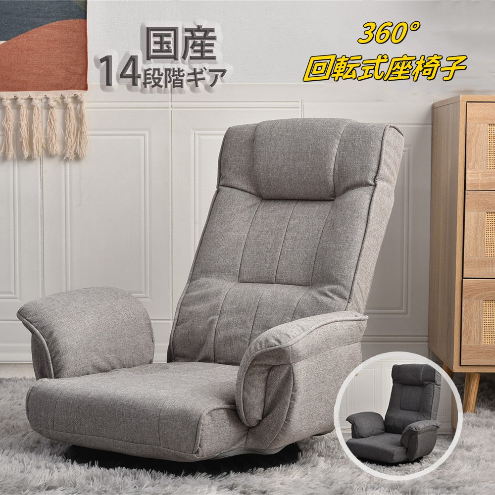 回転式座椅子 肘掛け ハイバック 座いす リクライニング 1人掛けソファー フロア ソファー リラックスチェア 折りたたみ