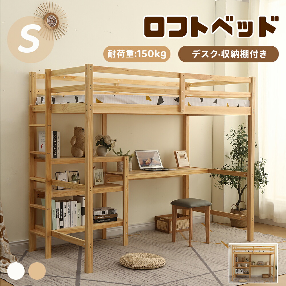 ロフトベッド 1台2役 耐荷重120kg S SD セミダブル パイプベッド シングル ベッド シングルベッド 木 収納 北欧風 子供ベッド 省スペース たっぴ 子供部屋