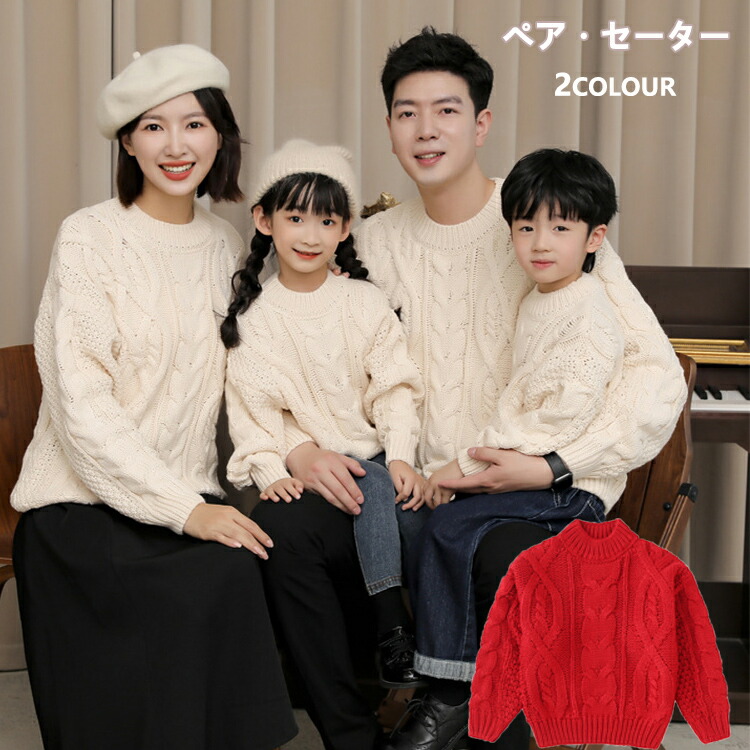 親子 ペアルック 冬 親子コーデ リンクコーデ セット 秋 春 セーター 長袖 親子ペア トップス ニート こども服 秋冬 男女 おそろい 服 赤 ベ 子供