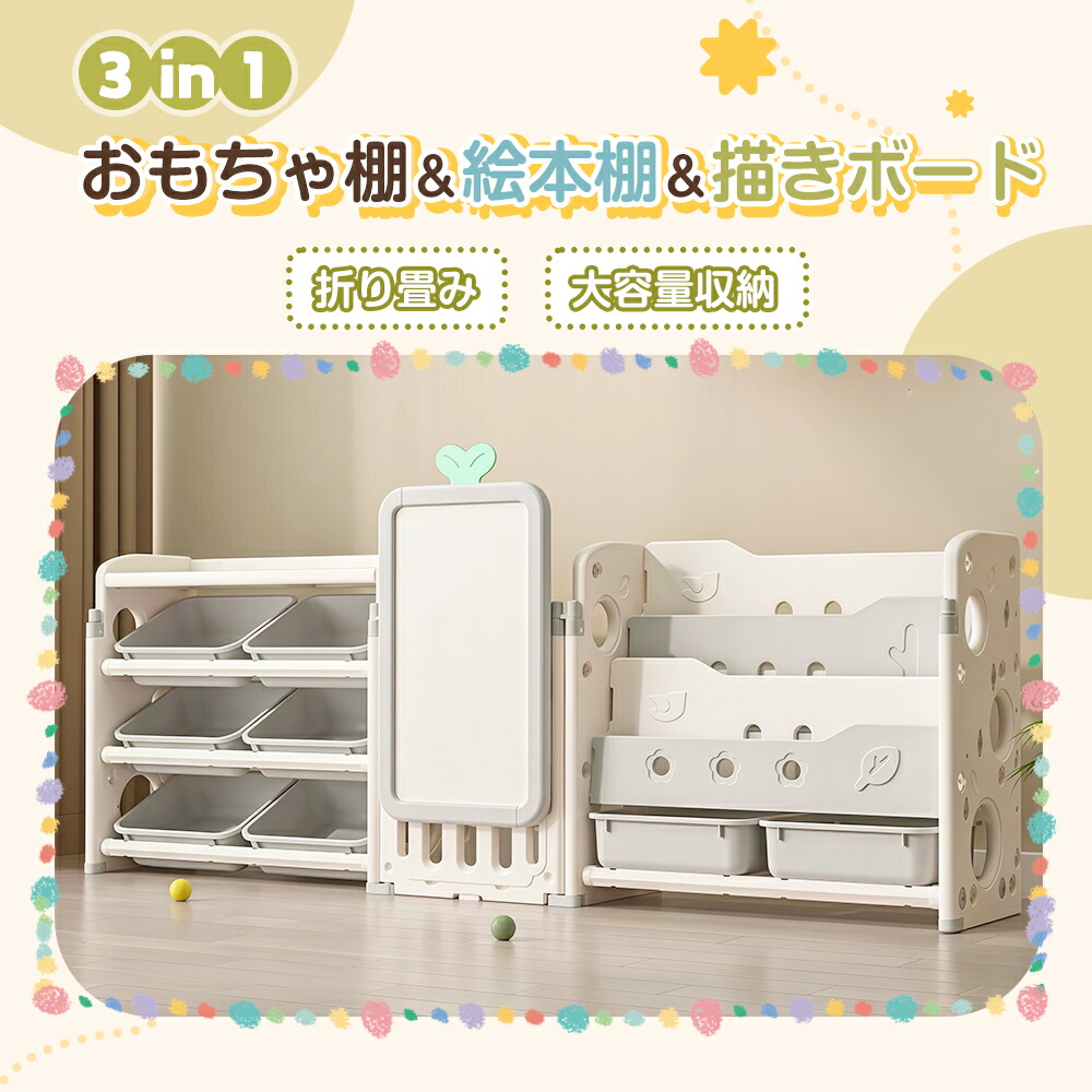 3in1おもちゃ棚&絵本棚&描きボード 折り畳み 本棚 書棚 絵本棚 大容量 キッズ 収納ラック おしゃれ 組立カンタン こども ラック